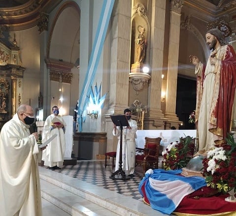 En el templo parroquial dedicado al Sagrado Corazón de Jesús, la Misa central se llevó a cabo en horas de la mañana, y fue presidida por el Obispo Diocesano, Mons. Luis Urbanc, quien hizo lo propio por la tarde en la Catedral Basílica y Santuario de Nuestra Señora del Valle.