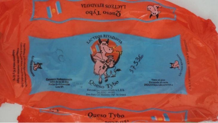 De acuerdo con la Disposición 4190/2021 publicada hoy en el Boletín Oficial, se trata del producto rotulado como “Queso Tybo, marca Lácteos Rivadavia, fecha de elaboración 01/04/2021, consumir preferentemente antes de los 90 días, Elaborado por Lácteos Rivadavia SRL, Zona Rural Col. Mackinlay (Sgo. del Estero), Venta al peso, Envasado al vacío, RNE: 220004198, RNPA: 2200242533”.