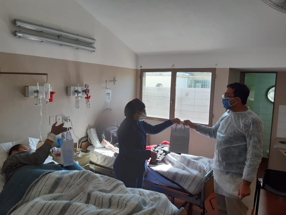 El gobernador Raúl Jalil les hizo llegar un pequeño obsequio a los papás que atraviesan el Covid-19 y el equipo directivo junto a personal del área Covid del nosocomio entregaron afectuosamente a cada uno de ellos.