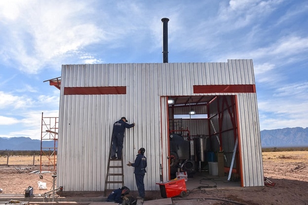 “Estamos trabajando en la instalación de la caldera por parte de la empresa privada CALDIMET S.R.L y la parte del equipo concertador; la obra civil está casi lista en cuanto al cerramiento, las conexiones vapor y combustible se están terminando. También en el día de mañana está llegando la gente especializada que debe conectar la concentradora a los equipos y se trabaja en la segunda etapa del proyecto de iluminación de la planta”.