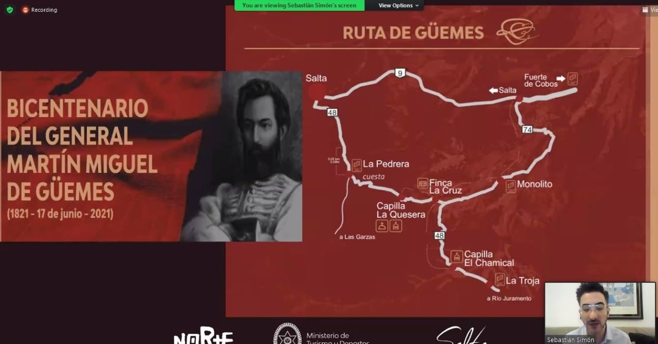 A su turno, el director de Turismo en Casa de Salta, Sebastián Simón, realizó un destacado repaso de las actividades que se llevan a cabo los días 16 y 17 de junio de todos los años en Salta en honor a Güemes. Y resaltó la principal característica de las celebraciones: el desfile de más de 4 mil gauchos vestidos con los ponchos clásicos que bañan de rojo y negro a la ciudad y los populares y multitudinarios actos que se llevan a cabo.