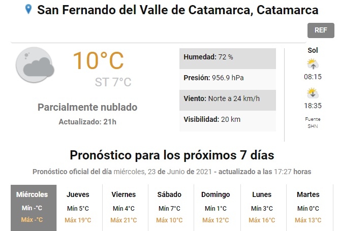Según el pronóstico extendido del Servicio Meteorológico Nacional, a partir del sábado se esperan máximas apenas por arriba de los 10° y mínimas ubicadas en torno a los 0°.