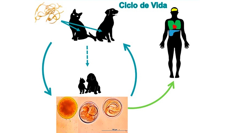 “Luego de un proceso de maduración en el ambiente, los huevos del parásito evolucionan al estadio infectivo para el humano, el cual se contagia al ingerirlos”, explicó Ávila, quien agregó que “una forma de contagio habitual se da en parques, zonas de juego y areneros donde, sobre todo los niños y niñas, juegan con tierra o arena infectadas con estos parásitos y luego se llevan las manos a la boca”.
