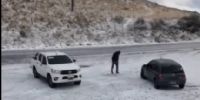 El paisaje de vistió de blanco, lo que fue motivo para que algunos catamarqueños se acercaran a la zona de la Cuestecilla a contemplar el regalo de la naturaleza.