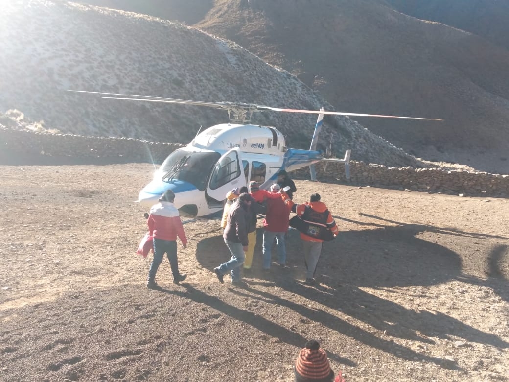 Así, en horas de la madrugada de hoy, los agentes de distintos organismos, guiados por Ricardo Suarez, empleado municipal conocedor de la zona, embarcaron en el helicóptero para guiar a los pilotos hacia el puesto donde reside Lorenza, quien se encontraba siendo asistida por personal de salud de la provincia y Defensa Civil de la Municipalidad de Fiambalá desde ayer.