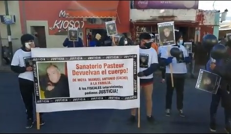 Ante la falta de respuestas, los familiares llegaron hasta la sede del sanatorio en calle Chacabuco, esquina Salta, donde exigen que les devuelvan el cuerpo.