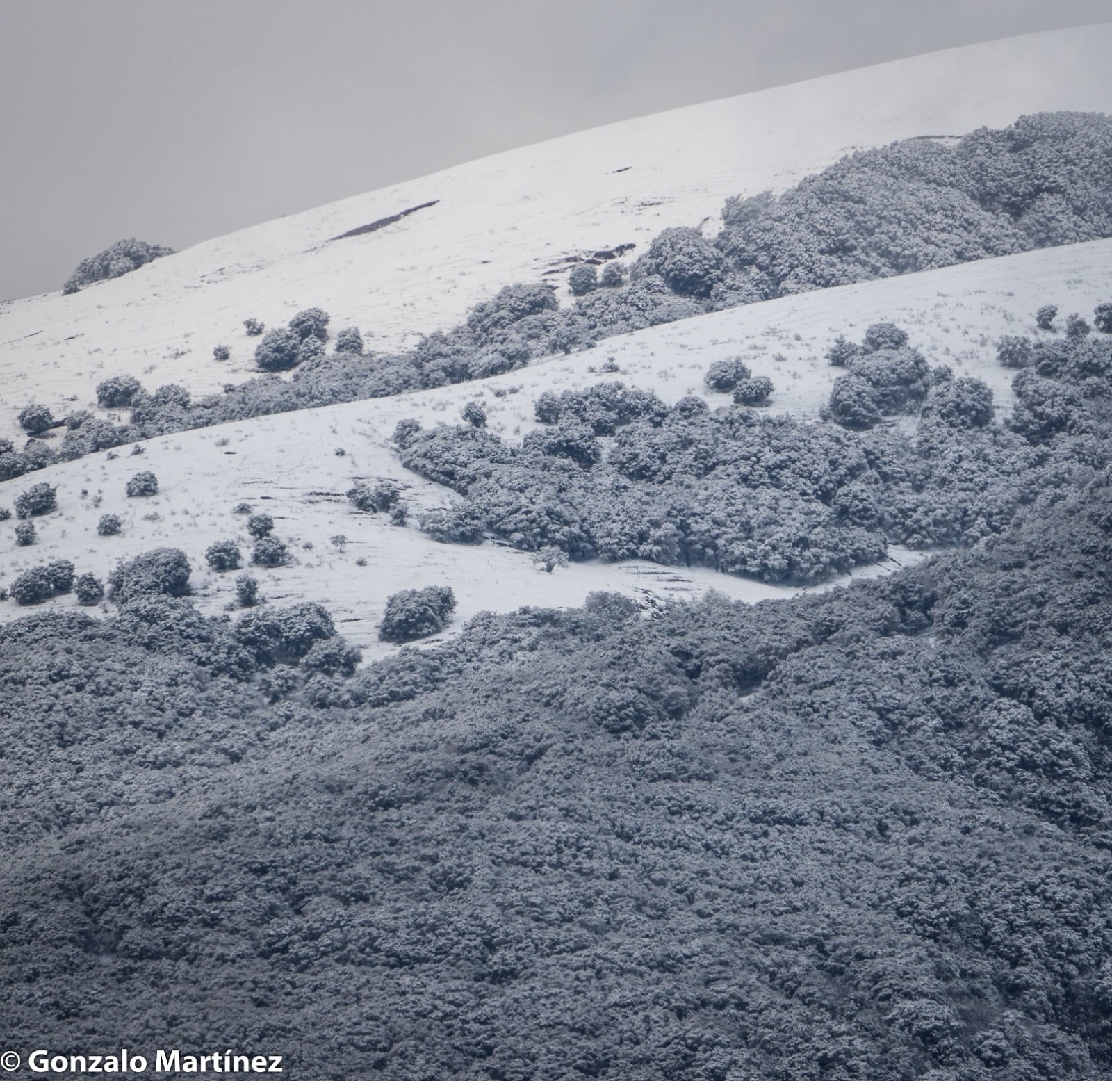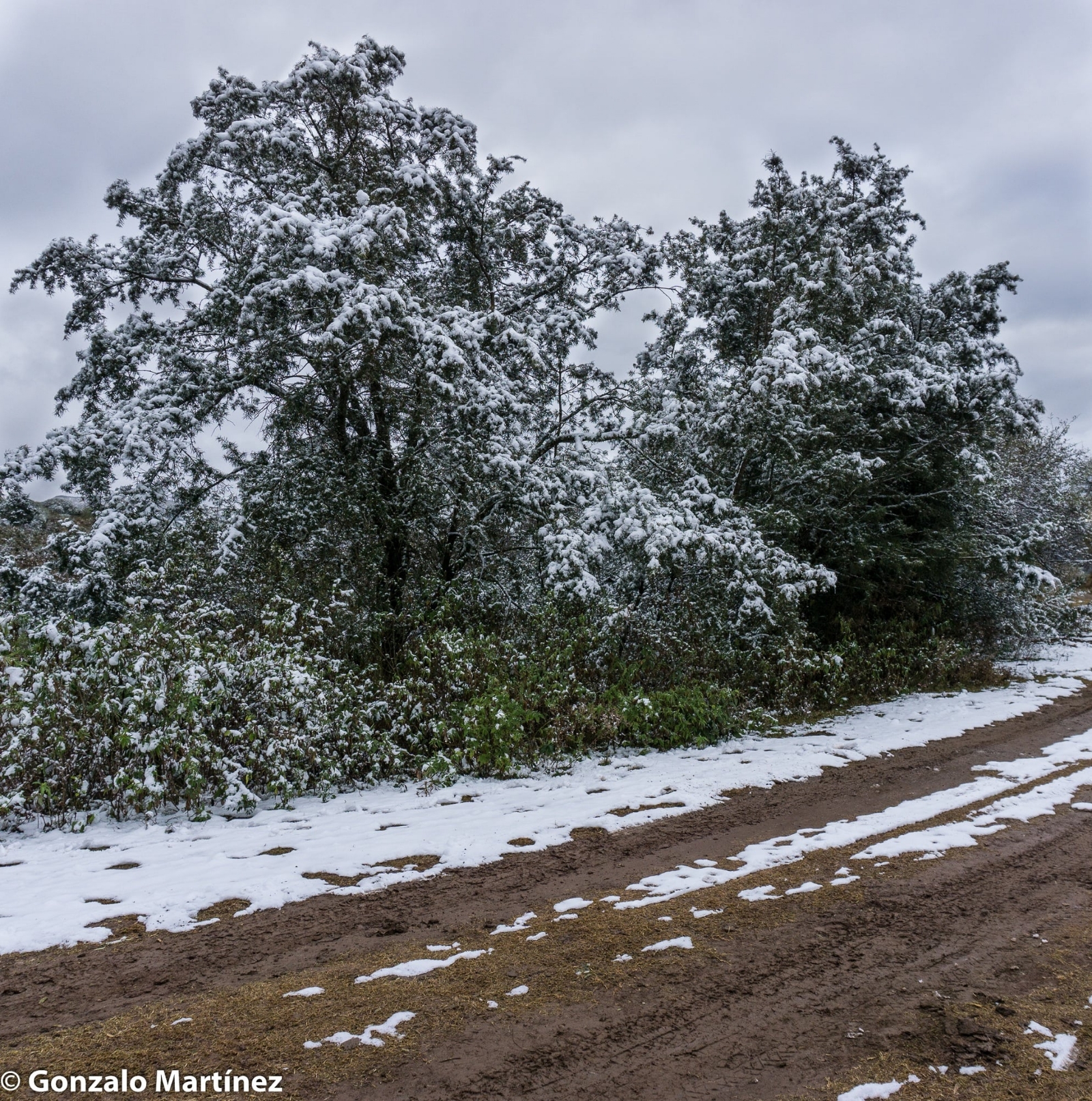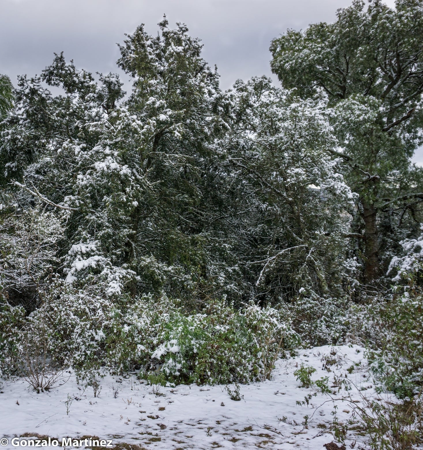 Las fotos fueron tomadas en la zona de Las Juntas, departamento Ambato, donde existen extensos bosques de pino del cerro (Podocarpus parlatorei). Se trata del único pino nativo, autóctono (o sea, crece de forma natural en nuestras sierras), forma parte del distrito o piso de vegetación llamado Bosque Montano, de la ecorregión Yungas. Al ser uno de los distritos que se encuentra a mayor altitud es común que se den nevadas allí, al igual que en el distrito inmediatamente superior, el de los Prados Montanos o Pastizales de Neblina.