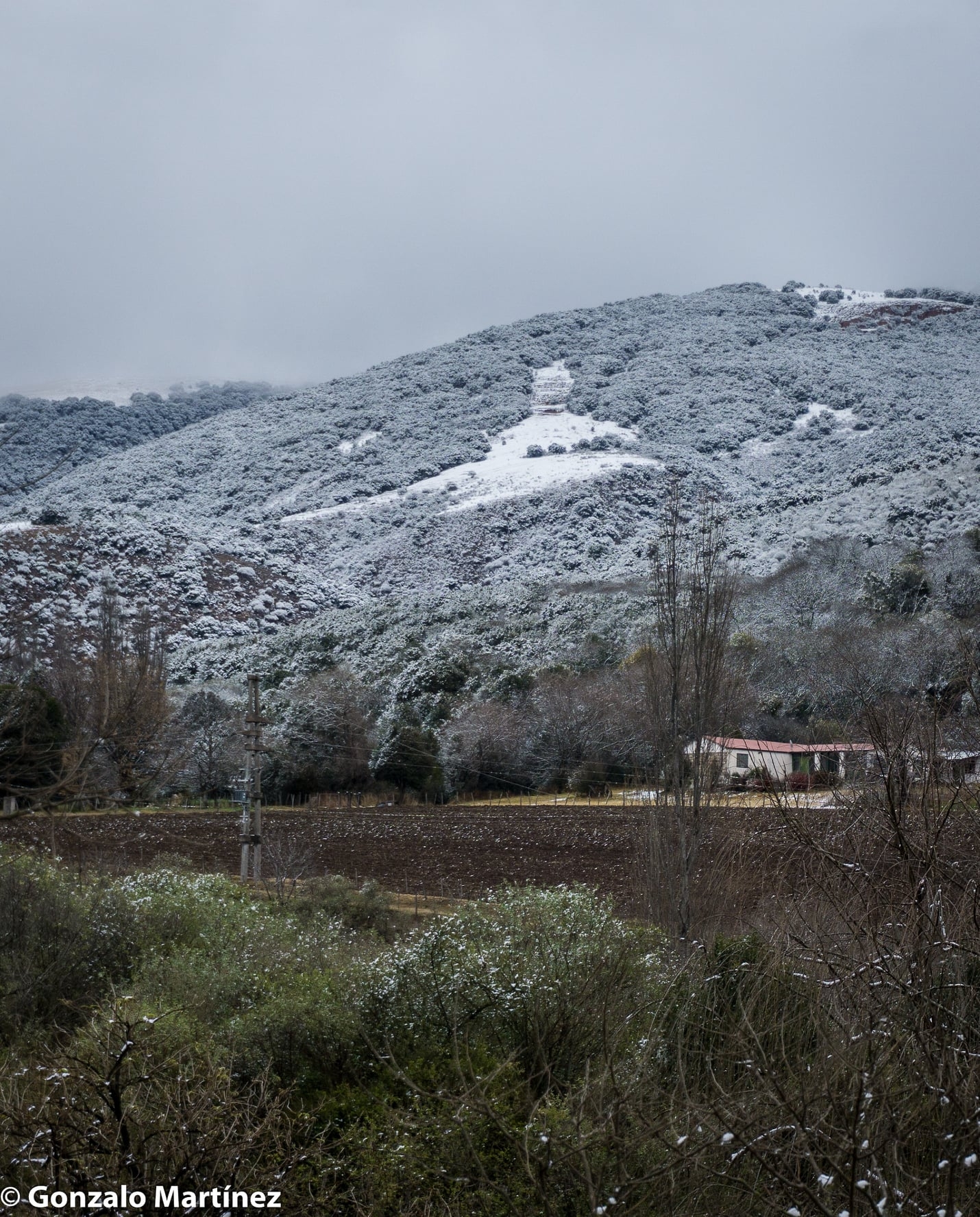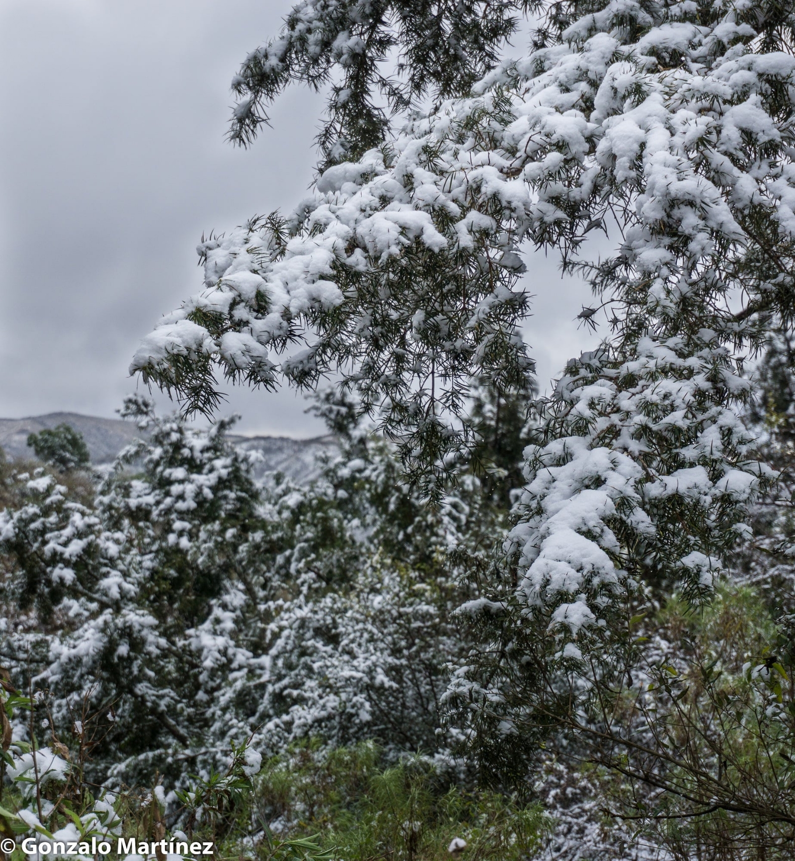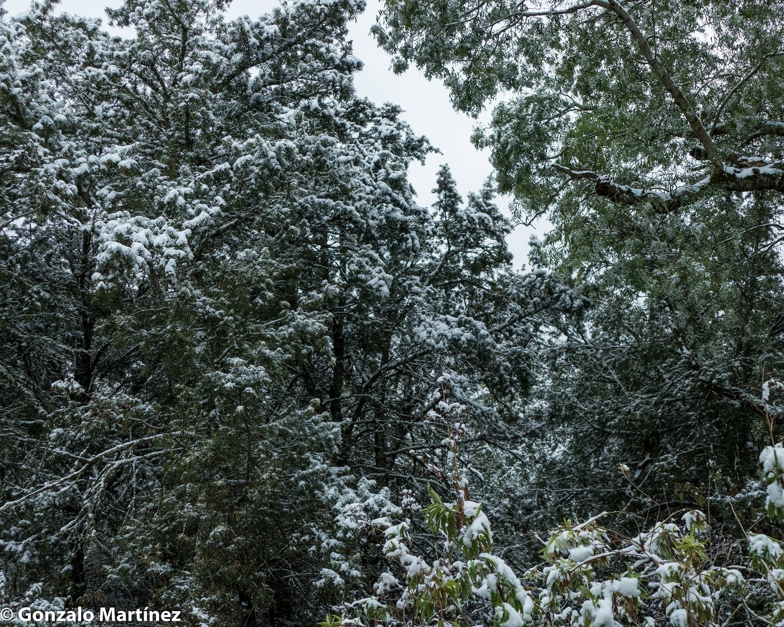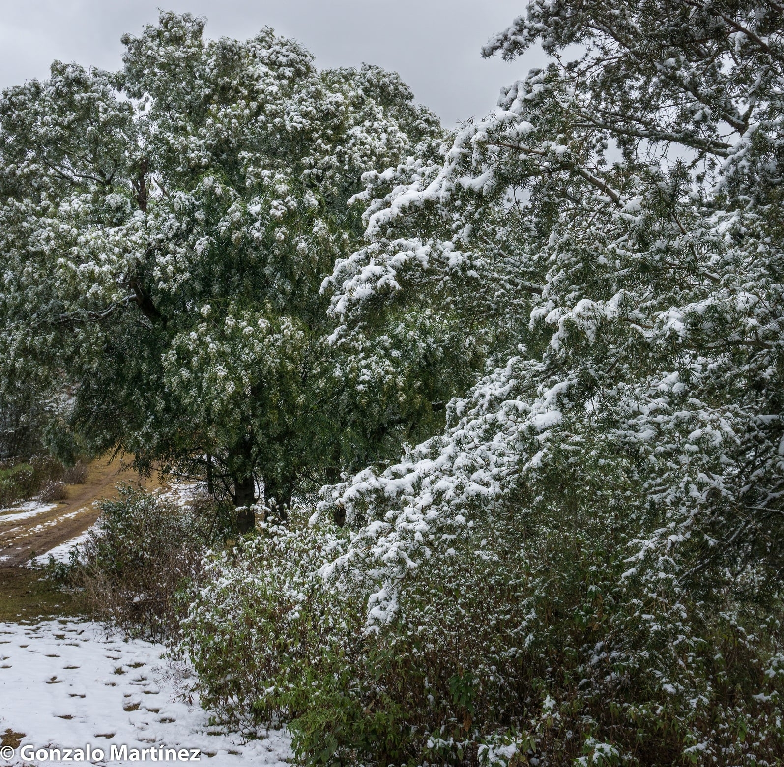 Las fotos fueron tomadas en la zona de Las Juntas, departamento Ambato, donde existen extensos bosques de pino del cerro (Podocarpus parlatorei). Se trata del único pino nativo, autóctono (o sea, crece de forma natural en nuestras sierras), forma parte del distrito o piso de vegetación llamado Bosque Montano, de la ecorregión Yungas. Al ser uno de los distritos que se encuentra a mayor altitud es común que se den nevadas allí, al igual que en el distrito inmediatamente superior, el de los Prados Montanos o Pastizales de Neblina.