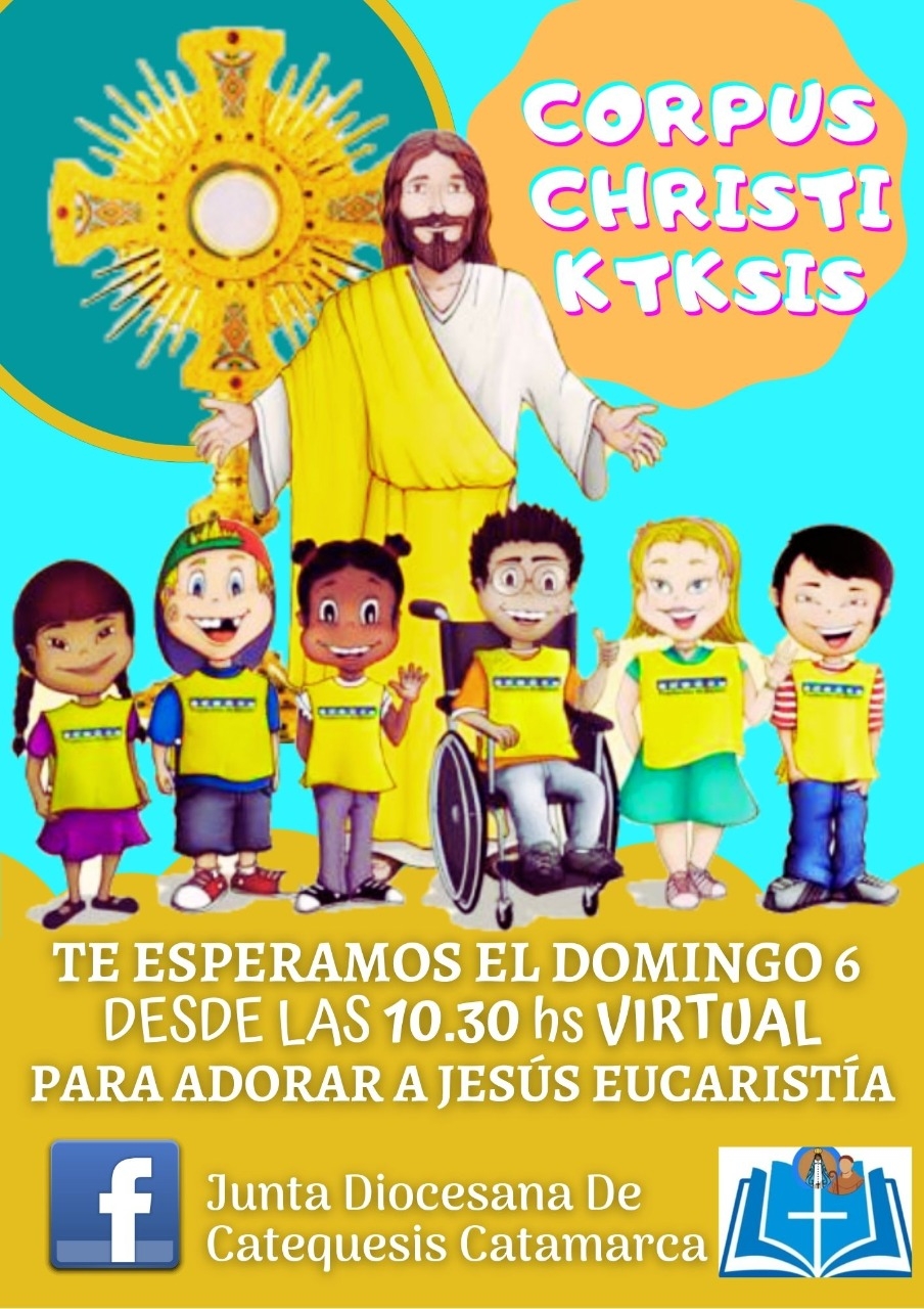 En el marco de la Jornada de Oración Diocesana, a realizarse el domingo 6 de junio, para celebrar la Fiesta de Corpus Christi, la Junta de Catequesis invita a todos los niños que se preparan para recibir los sacramentos de la Comunión y la Confirmación, y a sus catequistas, a participar de la celebración que se llevará a cabo a partir de las 10:30, de manera virtual.