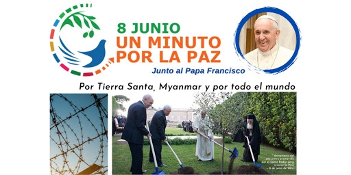 "El 8 de junio a las 13, la Acción Católica Internacional invita a dedicar un minuto por la paz, cada uno según su propia tradición religiosa. Rezamos en particular por Tierra Santa y Myanmar”, dijo el Santo Padre luego del rezo del Ángelus el domingo pasado en la Plaza de San Pedro en el Vaticano, uniéndose a la iniciativa.