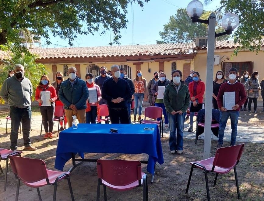 La ministra de Salud, Claudia Palladino, junto a la secretaria de Asistencia en Salud Pública, Manuela Ávila, el secretario General de ATSA, Leonardo Burgos, y el secretario de Trabajo de la provincia, Marino Medina, hicieron entrega de contratos de guardia y becados de las Áreas Programáticas Nº4 (Chumbicha), Nº5 (Pomán), Nº6 (Lavalle), Nº7 (Icaño) y Nº13 (El Alto).