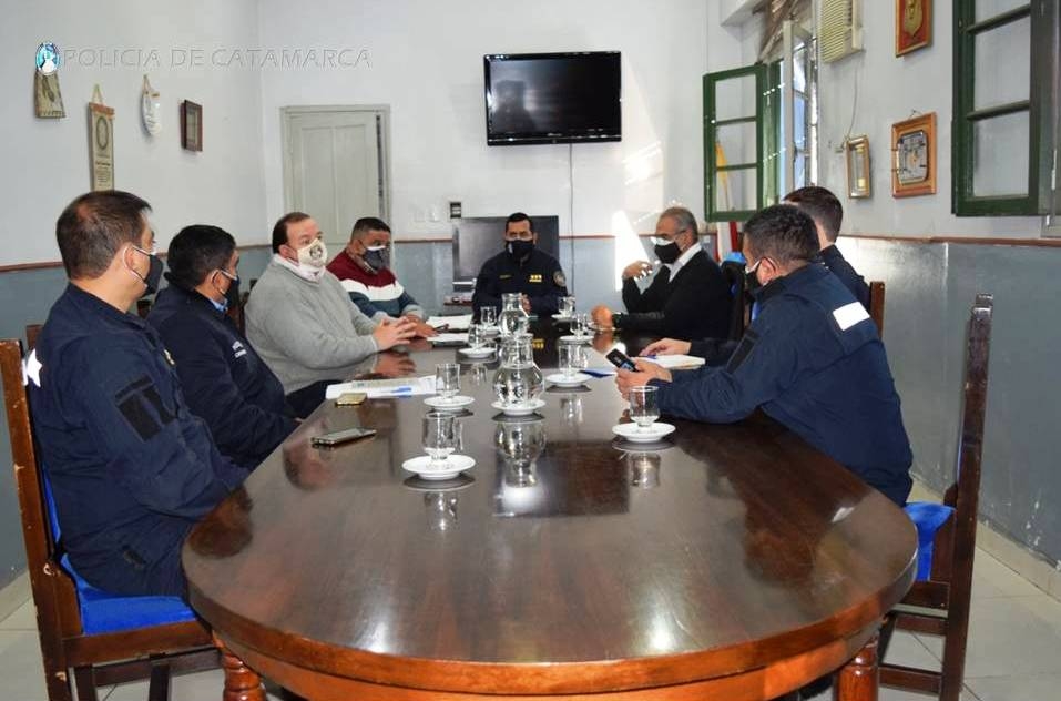 En la mañana de este miércoles, a las 9, en la Sala de Situación de la Jefatura General de Policía, el Jefe del Departamento Operaciones Policiales, Comisario General Hugo Fabián Oliva, junto al titular de la Jefatura de Zona Norte, Comisario Mayor Juan Ramón Atencio, recibieron al Coordinador General de la Comisión Infraestructura y Logística Fray Mamerto Esquiú, Rubén Lobos.