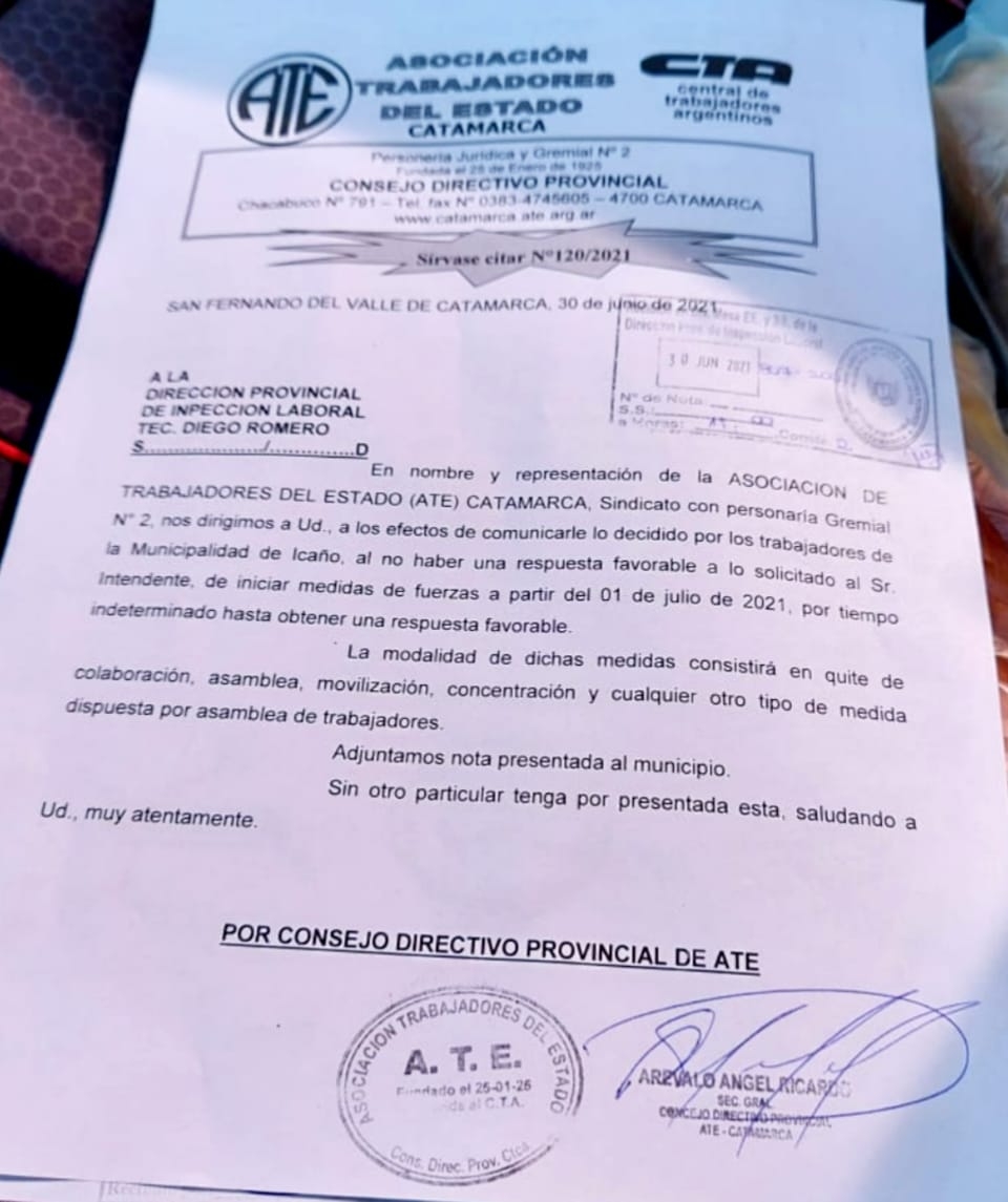 Los municipales llevan adelante el paro de actividades "al no haber respuesta favorable a lo solicitado al intendente José Pío Carletta”.