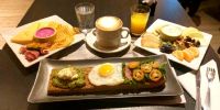 La presentación eléctrica de colores del plato estelar y sus aditivos es más que extravagante, partiendo desde su nombre: New Brunch. Considero que proveniente de generar una ‘nueva rama’ (que sería su traducción al español), de la mixtura de sabores nuevos combinados con las infusiones de la tarde o de la mañana, como más te guste.