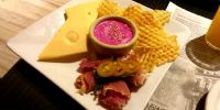 En otra escena de la mesa, se aprecia otro plato que también forma parte de esta oferta gastronómica. “Picadita: queso, jamón crudo, papas rejillas y untable de remolacha”, continuaba detallando la publicación de aquel video que me invitó a este lugar y que agradezco haber visto.