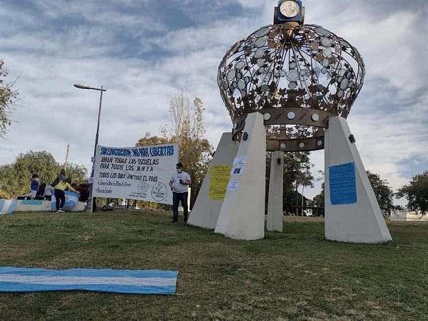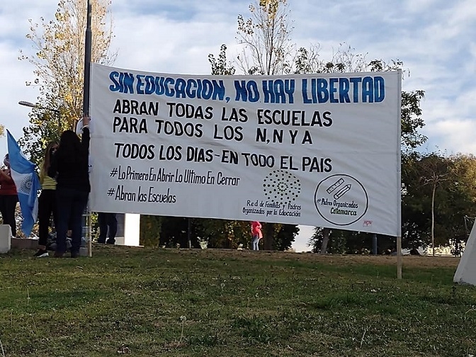 Durante la protesta, reiteraron la necesidad de que los chicos vuelvan a las escuelas ya que las mismas, está comprobado, no son foco de contagio.