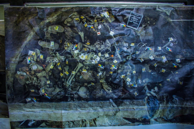 Nos acompañó Gloria Colaneri, jefa de peritos del sitio, que nos mostró los trabajos realizados en el pozo mismo. "Ha sido un largo trayecto. Estuvimos muchos años en que no obteníamos resultados en las excavaciones en el pozo, tantos que todo el proyecto estuvo a punto de caerse. Finalmente, el pozo comenzó a hablar, a contarnos en horror de muertes ocurridos aquí".
