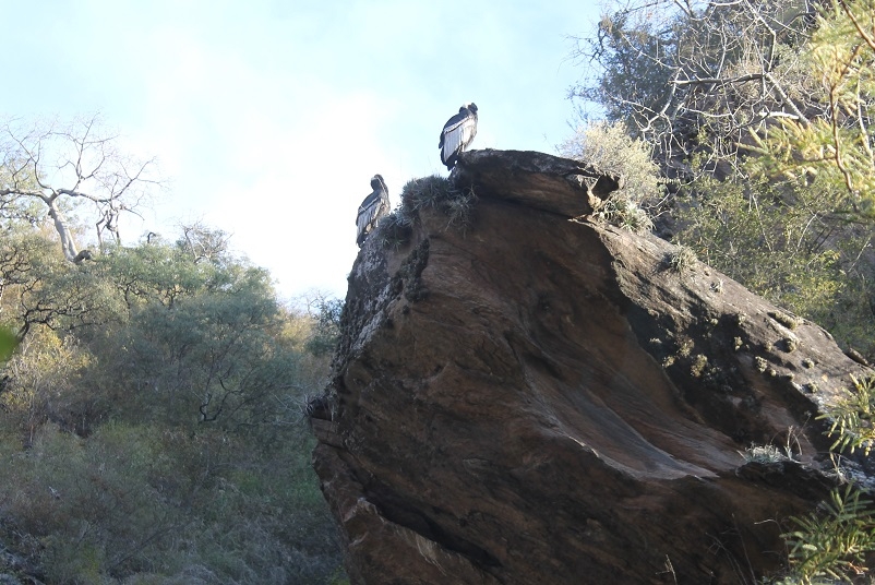 La ficha contiene también detalles de la naturaleza de la zona, describiendo que la nutrida flora cuenta con hermosos ejemplares de quebracho, cardones, jarillas, sombra de toro, teatín, churqui, pencas, otros…”, y en cuanto a la fauna autóctona alude a la presencia de zorzales, perdices, liebres, cuis, palomas, reina mora, horneros, carpinteros, otros…”, ítem final que debería incluir a las siempre atentas urracas, como a la pareja de cóndores que avistamos muy comprometidos en el cuidando de su nido sobre una enorme piedra cumbrera, que más tarde nos siguieron en su excelso vuelo, asegurándose que nos marcharíamos.