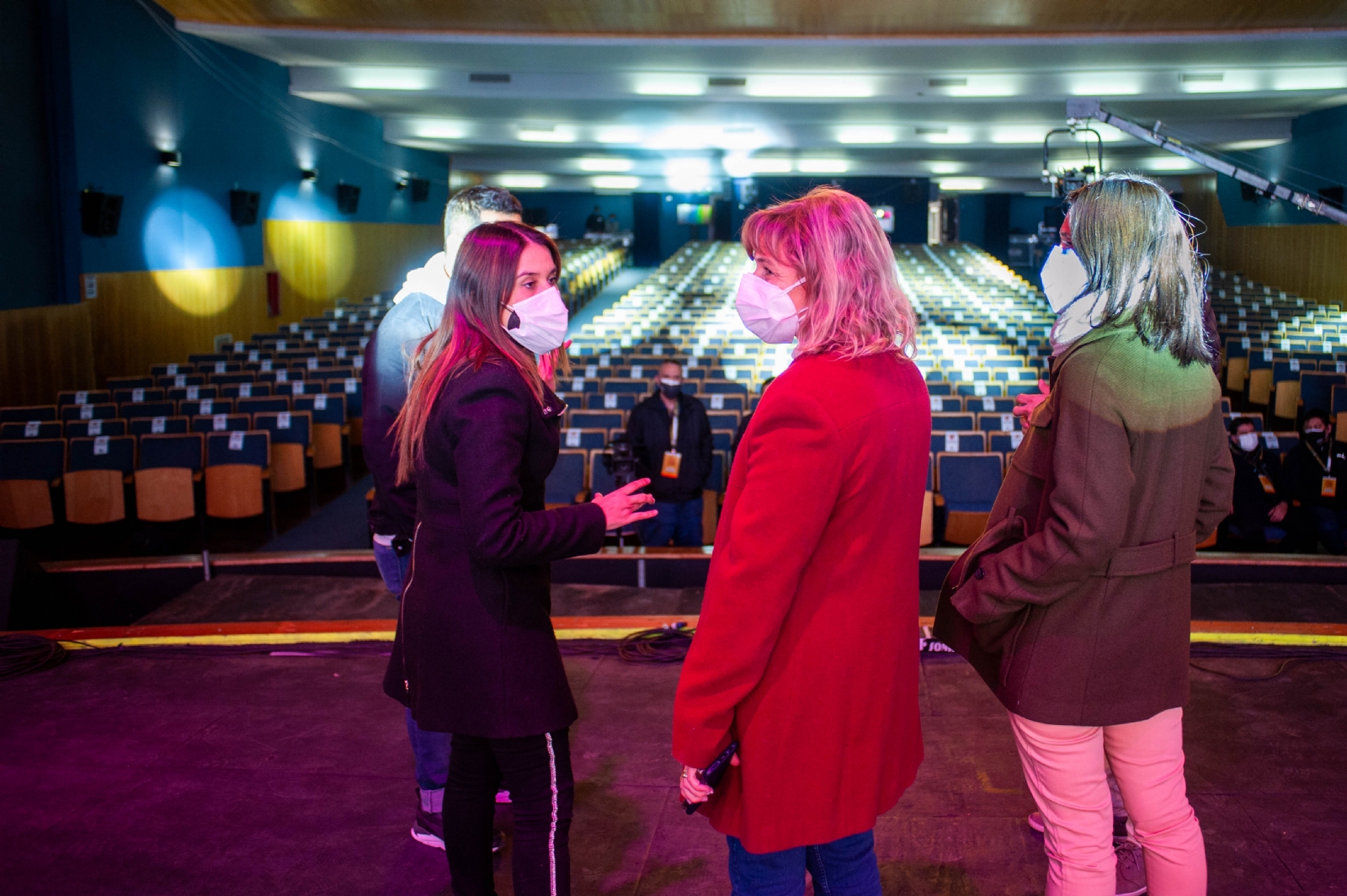 Además, los funcionarios de las carteras de Salud, y Cultura y Turismo recorrieron todas las instalaciones de Cine Teatro Catamarca para verificar todo el protocolo sanitario que tendrá la fiesta mayor de los catamarqueños, en cuanto a distanciamiento y sanitización permanente de los lugares comunes.