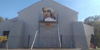 Camino a la beatificación, un fantástico mural de Fray Mamerto Esquiú es plasmado por las manos mágicas del artista plástico Luciano Reynoso, en una de las paredes de la iglesia de San José en Piedra Blanca.