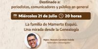 En esta oportunidad, la temática será “La familia de Mamerto Esquiú. Una mirada desde la Genealogía”, que estará a cargo del Mgter. Marcelo Gershani Oviedo, historiador, investigador y especialista en genealogía.