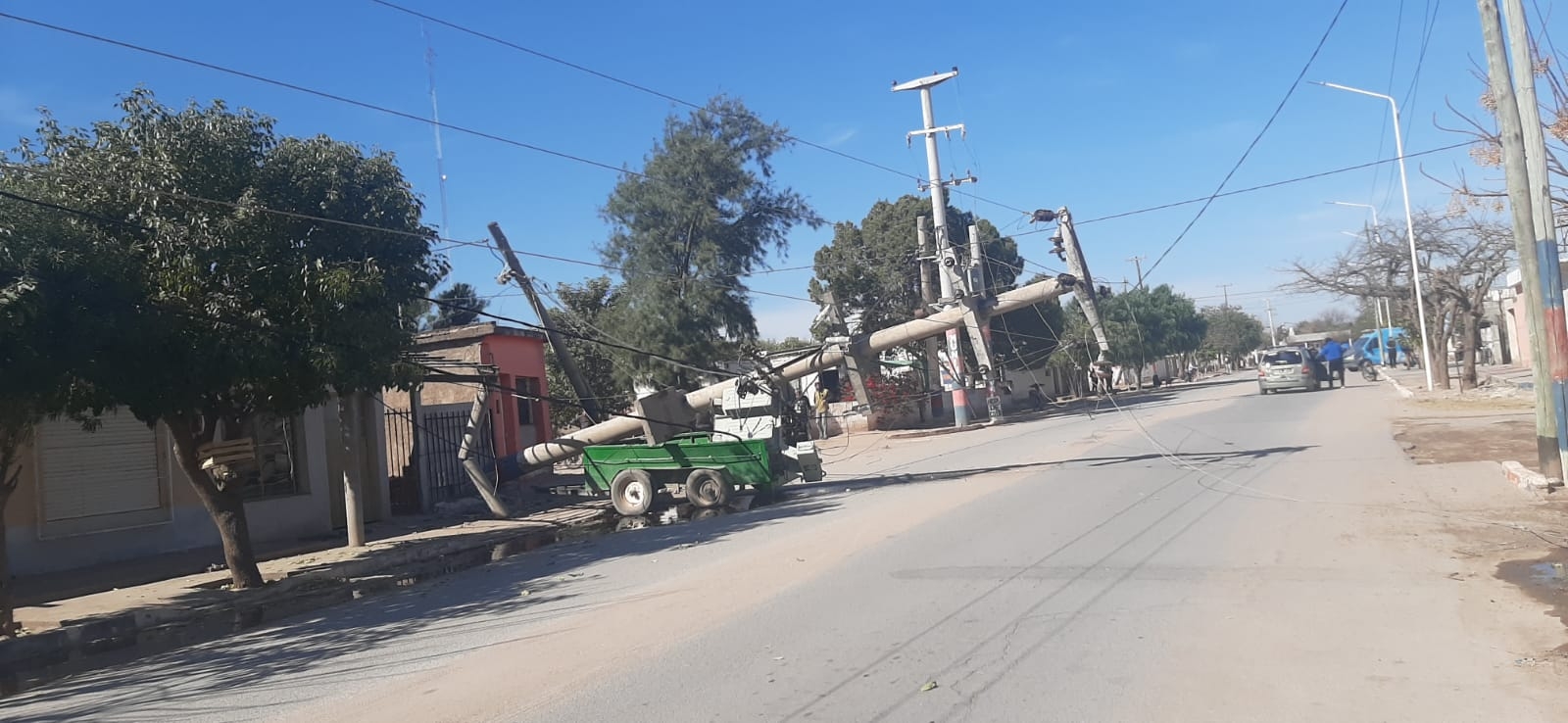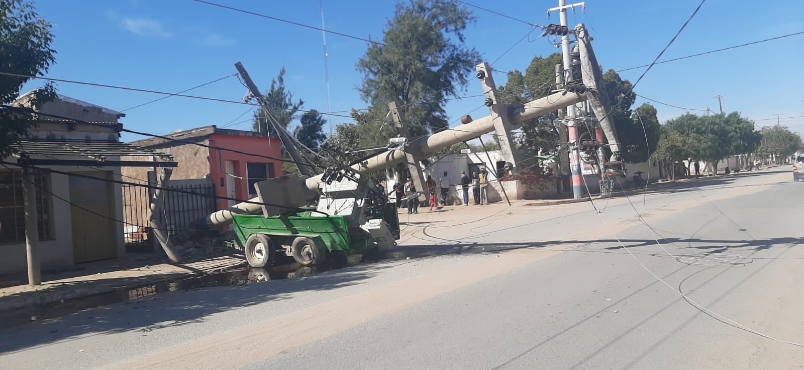"Gracias a Dios no hubo que lamentar desgracias personales, pero están cortados los cables, afectó a otros postes, un desastre", expresaron en el lugar.