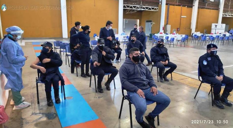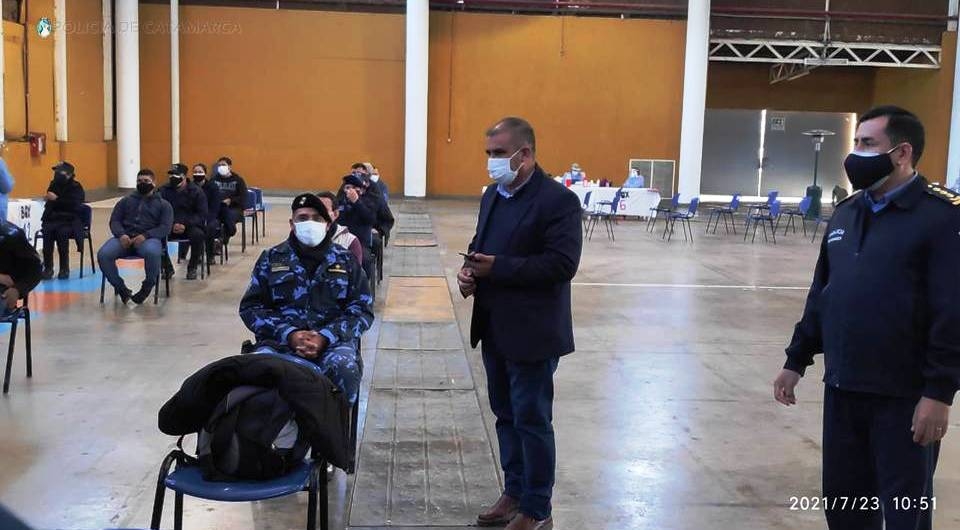 Así se da cumplimiento al compromiso asumido por el gobernador Raúl Jalil, para concretar la vacunación del personal policial que desde el primer día trabaja al servicio de la comunidad catamarqueña, combatiendo la propagación del coronavirus COVID-19.