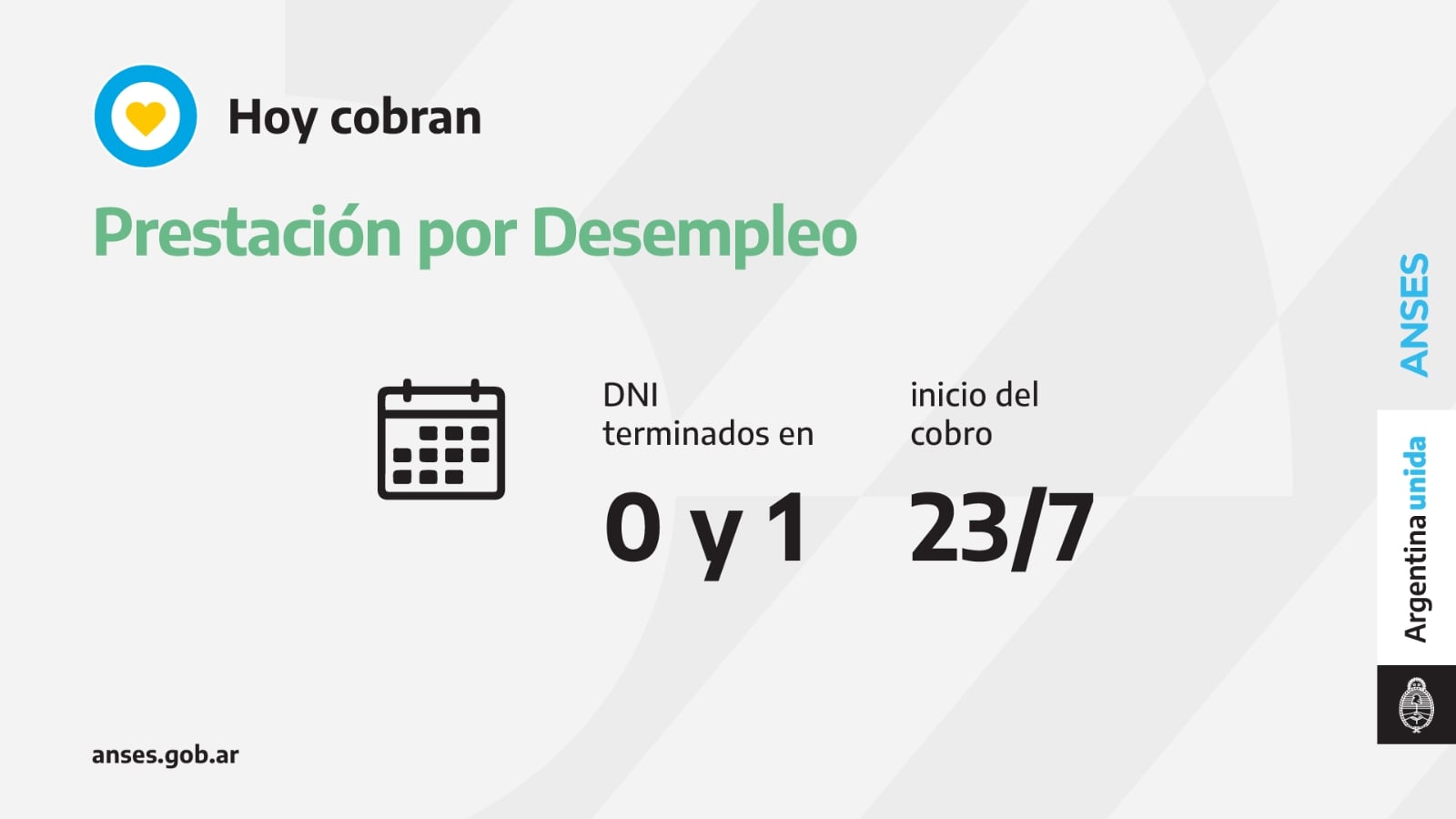 Hoy perciben la Prestación por Desempleo las personas cuyos documentos finalicen en 0 y 1.