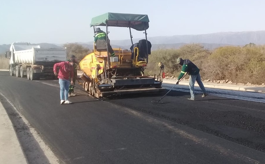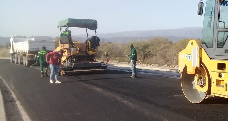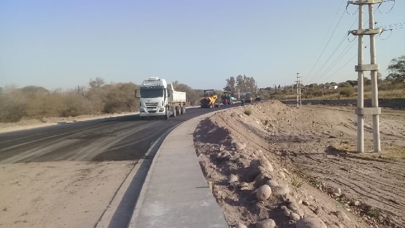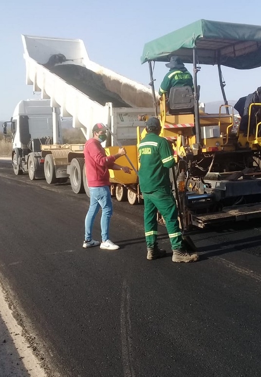 En alrededor de unos 3 km., este fin de semana pudieron observarse a calificados operarios de Vialidad Provincial descargando y alisando el asfalto, maniobrando con soltura enormes camiones y pesadas compactadoras, entre los cordones cuneta, veredas y cuatro enormes alcantarillas de desagües urbanos, construidas previamente por una empresa privada local, como su mano de obra.