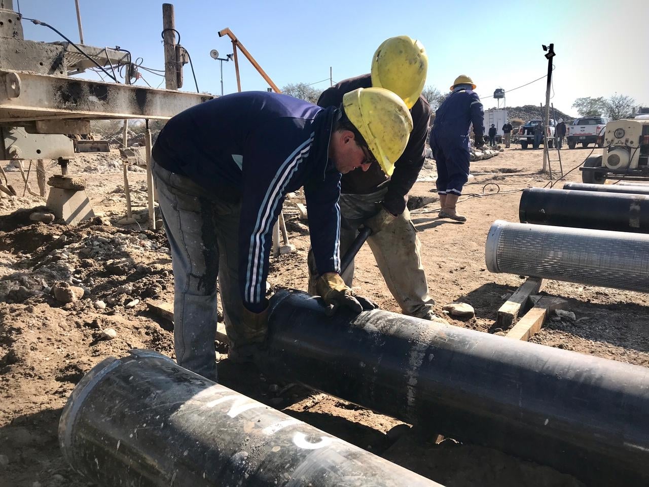 Se trata del pozo número 65 que se encuentra ubicado en la Zona Sur en la etapa de entubado con cañería de 14 pulgadas en una profundidad aproximada de 200 metros.