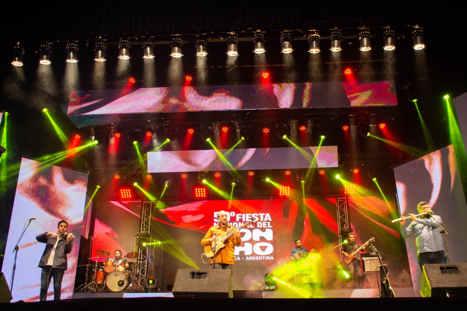 La segunda jornada de la histórica edición N° 50 del Poncho mantuvo su clima festivalero de la mano de la agrupación El Vendaval, que propuso una puesta en escena basada en un repertorio ligado al folclore tradicional. El espectáculo incluyó la interpretación de la zamba “Recordando a mi gente” del cantautor local Lito Martínez Figueroa, la chacarera “La Finadita”, y “La Chaya del Poncho” perteneciente a la emblemática cantora Selva Gijena. De este modo, la formación compuesta por Fernando y Jorge Tapia, Franco Tolaba, Juan Manuel Cutuli, Heber Elizalde y Rubén Cedrón dejó su característico sello artístico sobre el principal escenario folclórico de Catamarca.