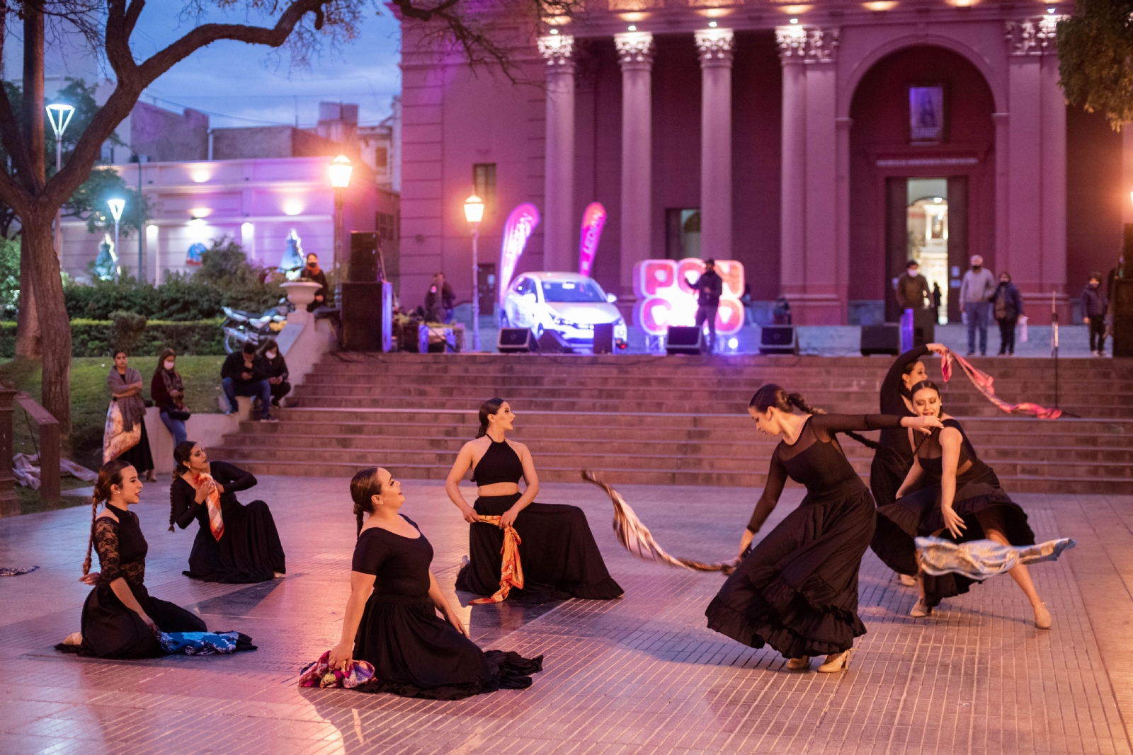 Hasta el 1 de agosto, y como antesala del inicio de la transmisión de la Fiesta del Poncho desde el Paseo de la Fe se promueven todos los días a las 18 hs intervenciones artísticas denominadas “Palpitando el Poncho”. El lunes se presentaron en vivo Raúl Acevedo y la Compañía de Danzas Meraki.
