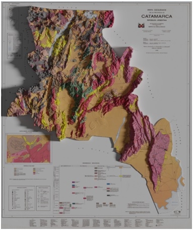 El equipo de IDECAT preparó mapas renderizados en 3D con información del Mapa Geológico elaborado por SEGEMAR (Servicio Geológico Minero Argentino) de la Provincia de Catamarca, y el Modelo Digital de Elevaciones (DEM) SRTM de 90 m.