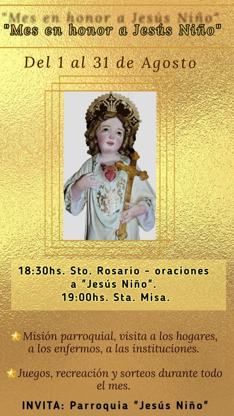 Todos los días, hasta el martes 31, se rezará el Santo Rosario a las 18.30, y se celebrará la Santa Misa a las 19.00.