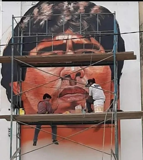 Entre sus últimos trabajos registra “El Dios”, una pintura en su ciudad de residencia, de 12 metros de largo por 10 de ancho, “sobre Diego Maradona, inspirada en una secuencia del Mundial de México ‘86, donde Argentina se coronó campeón del mundo, con Diego como estandarte”, contó.