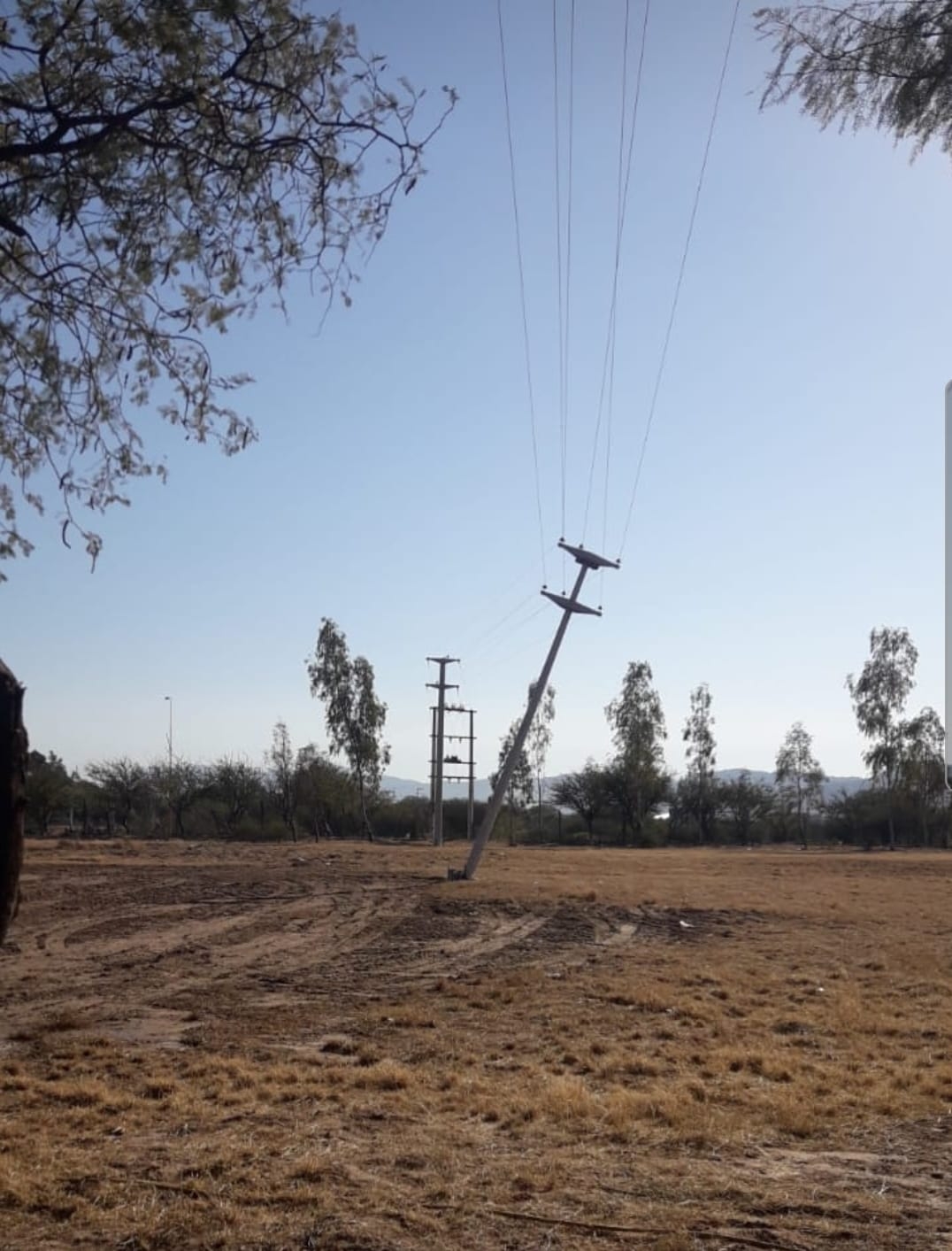 Se trata de columnas de media tensión que se encontraban inclinadas y con riesgo de caer totalmente. Hasta el momento, se desconocen los motivos de lo sucedido.
