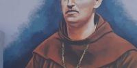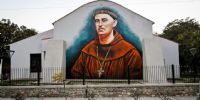 Sus manos transformaron una pared en blanco de la iglesia de Piedra Blanca, a tener un mural espectacular con la figura del fraile.
