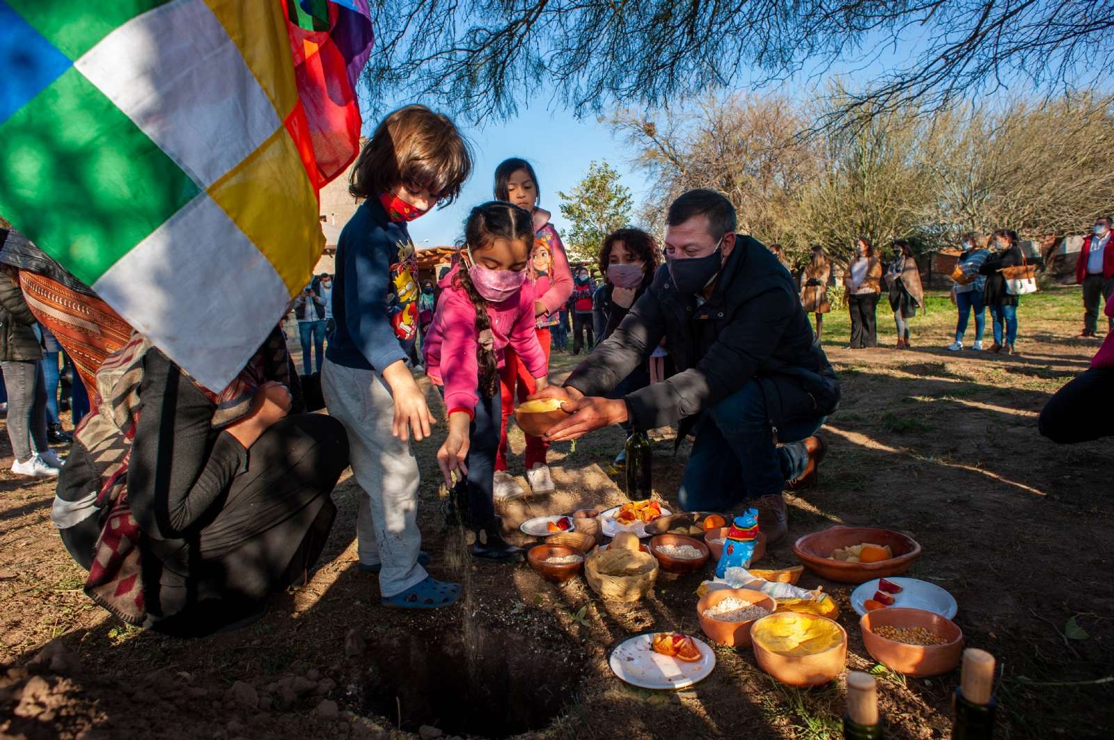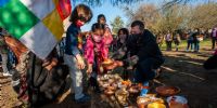 Muchos visitantes que recorrían la Feria SFVC de Artesanías y Diseño ubicada en la plaza contigua se sumaron a la ceremonia, y en silencio y con mucho respeto, homenajearon a la Pachamama.