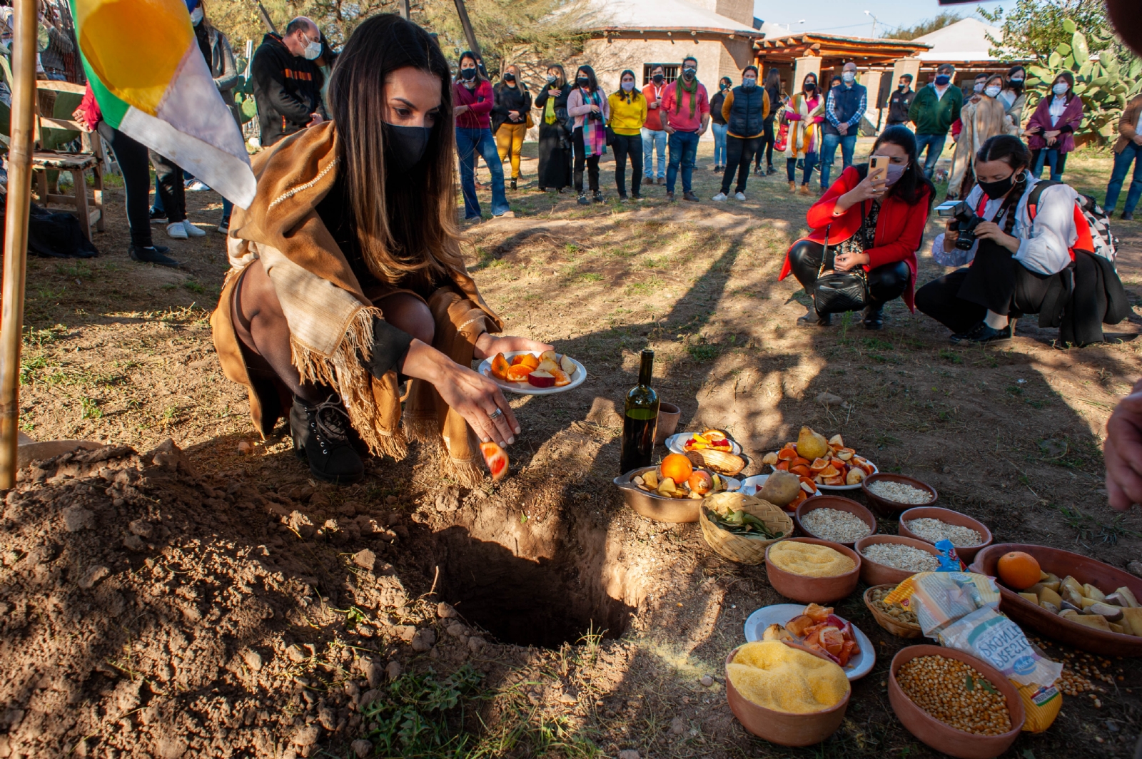 Con la guía del profesor Mario Toro, quien explicó el significado de este ritual de agradecimiento que las comunidades andinas y todos los que respetan a la Madre Tierra realizan en esta época, se ofrendaron alimentos y bebidas como forma de corpachar y agradecer todo lo que la tierra da.