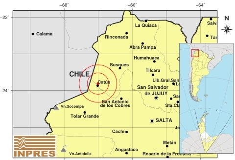 Según el organismo, el temblor se localizó a 196 kilómetros al noroeste de Salta capital, a 180 kilómetros de San Salvador de Jujuy, a 12 kilómetros al oeste de Catúa y a una profundidad de 245 kilómetros.