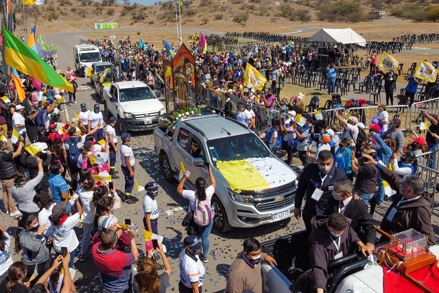 El Intendente Guillermo Ferreyra llegó al lugar acompañado de Monseñor Luis Urbanc, encabezando la caravana que acompañaba a las imágenes y que recorrieron algunos puntos del departamento.