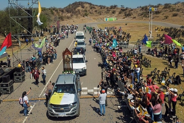 El lugar de encuentro fue dispuesto por el municipio de Fray Mamerto Esquiú para que todos los vecinos tuvieran la posibilidad de vivir este histórico momento y acompañar una verdadera muestra de fe.