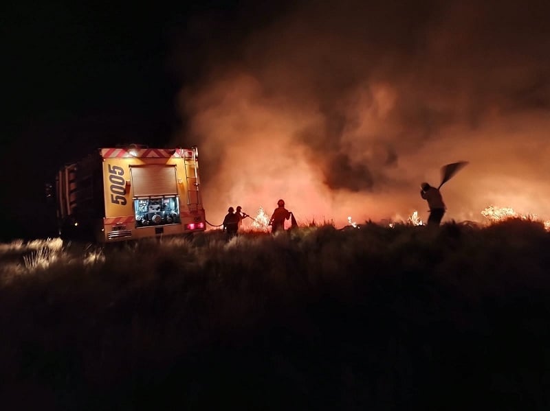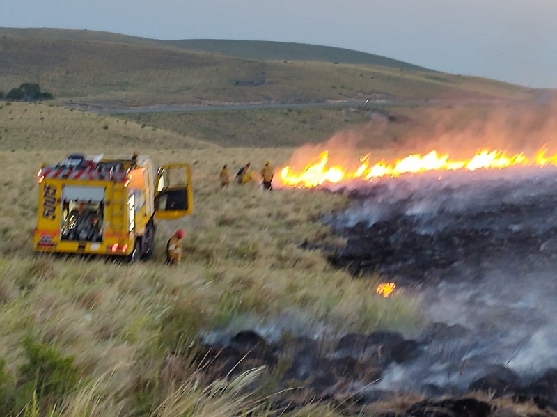 Se solicita a la población transitar con suma precaución sobre Ruta Provincial N° 2 ya que en el lugar se encuentran combatiendo el incendio y el humo reduce la visibilidad de la calzada.