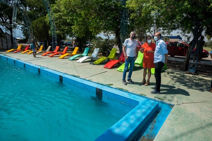 En la visita, hicieron entrega de ojotas para todos los chicos que asisten y de los insumos de los químicos necesarios para la mantención del agua del natatorio, en el marco del Programa Provincial de las Colonias de Verano 2022 que está impulsando la Secretaría de Deportes, dependiente del Ministerio de Cultura, Turismo y Deporte, para las piletas de la provincia que conforman este proyecto.