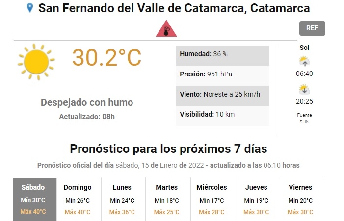 Mientras tanto, para hoy sábado y mañana, el termómetro llegará nuevamente a los 40°. El lunes comienza a descender la temperatura con un registró máximo de 36°.