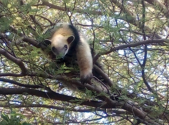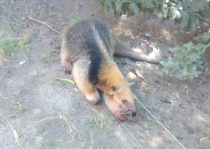 En el fondo de la vivienda se encontraba un ejemplar de oso melero por lo que de inmediato se puso en conocimiento de personal de Flora y Fauna, quienes capturaron el animal para luego liberarlo en su habit natural.