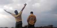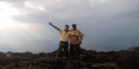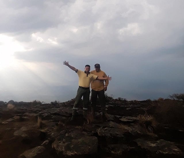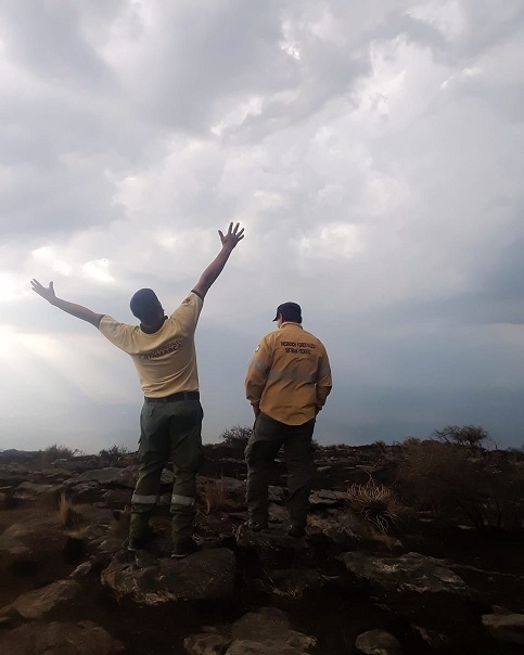 "AYUDA DIVINA. Compartimos con todos ustedes, la alegría de brigadistas que se encuentra junto a Bomberos Bomberos Voluntarios en la zona del incendio en el cerro Ancasti. Gracias Dios y a nuestra Virgen del Valle por la bendición", señala un posteo de Defensa Civil en Facebook.