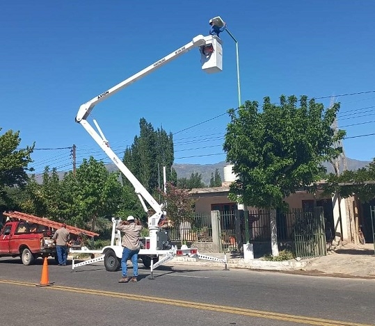 Esta semana se están colocando luminarias led de 150 W desde la entrada a la Quebrada de Jujuil en la localidad de La Loma hasta la Estación de Servicio, luego se avanzará en Famatanca y Palo Seco.