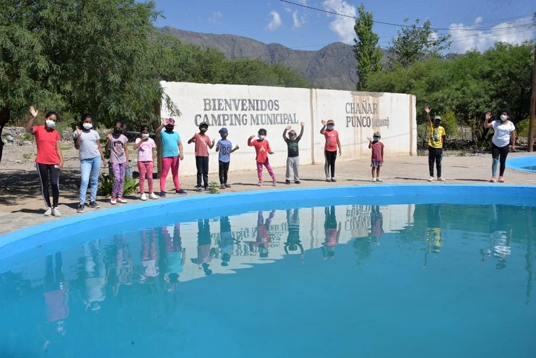 En el casco céntrico las actividades son en el Polideportivo y en la pileta del camping municipal, más de 75 niños, de entre 6 y 12 años, cada mañana desarrollan actividades lúdicas, deportivas, talleres manuales, bicicleteadas y caminatas. Los profesores a cargo de la tarea de cuidado y contención son Francisco Marcial, Nicolás Villagrán, Oscar Mamaní, Facundo Manzarás, Franco Cáceres, Laura Ana González, Micaela Paez y Daniela Rasgido.