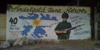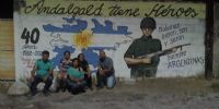 En este mural, que tuvo como lema "Las Malvinas fueron, son y serán Argentinas", han sido pintadas las Islas Malvinas con los colores de la Bandera Nacional y un joven soldado que refleja a quienes dieron su vida por defender a la Patria, más frases que manifiestan la historia del país.